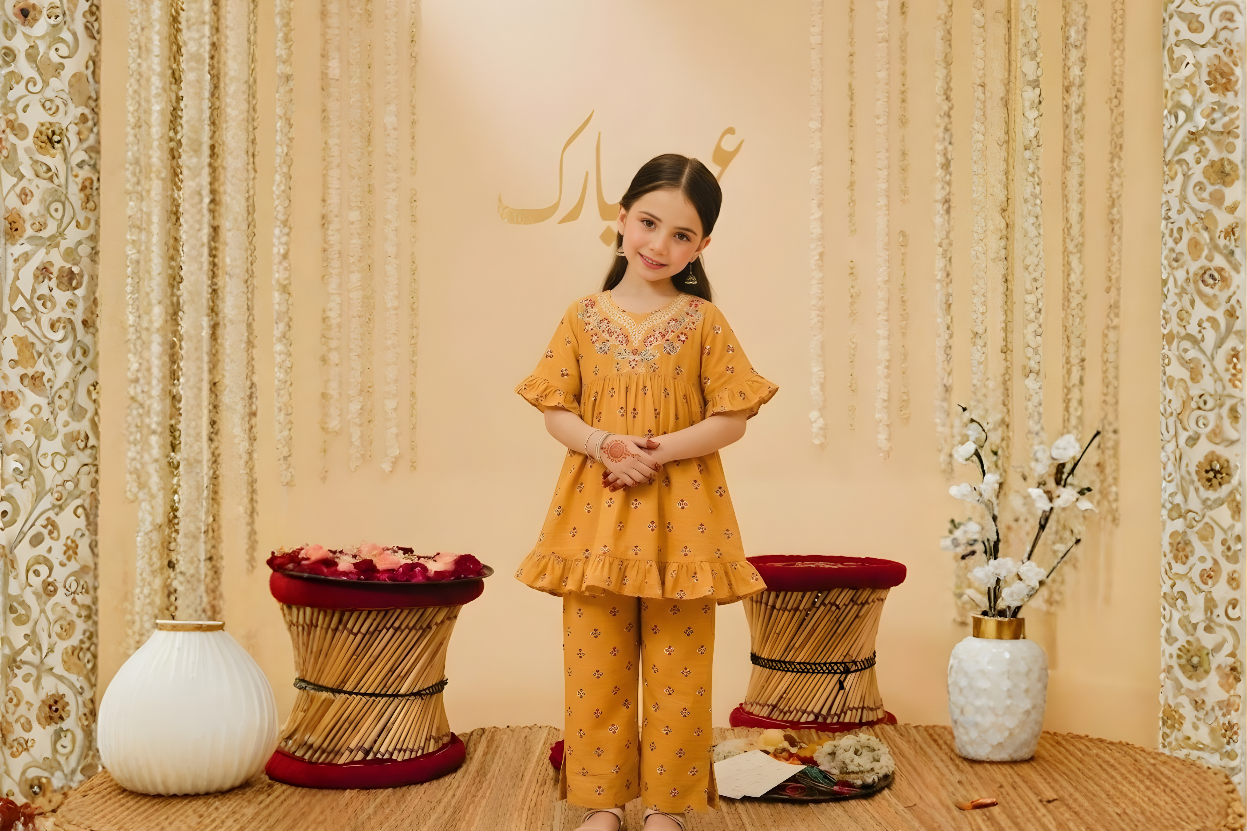 Girls Embroidered Lawn Suit - Yellow with Gharara | Eid Collection